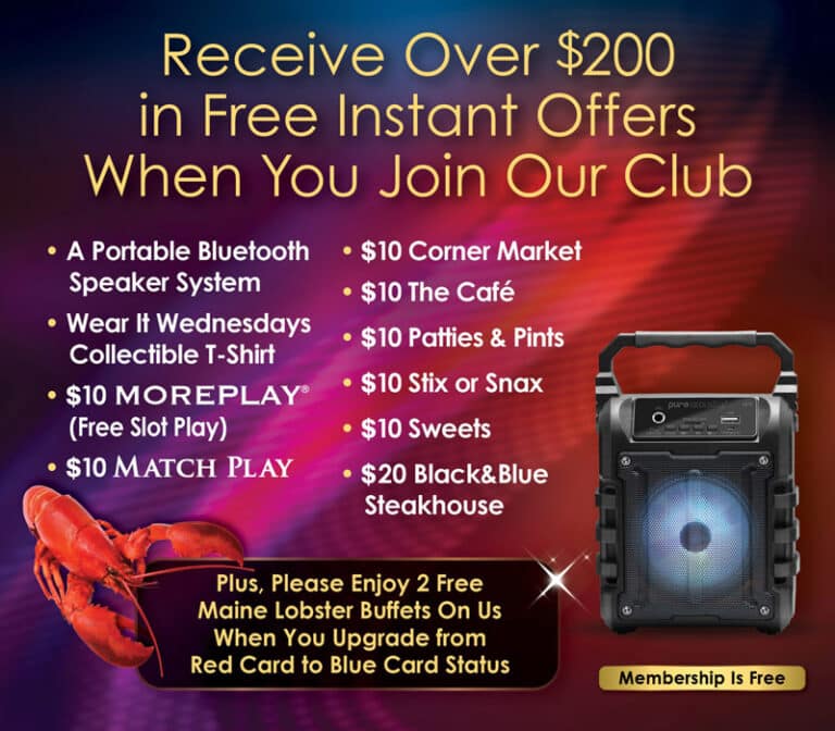 - Además, Recibe 2 Buffets de Langosta de Maine Gratis al Avanzar de Tarjeta Roja a Tarjeta Azul